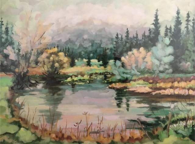 Haut-Jura, Lac de Bellefontaine, Gouache 49x63